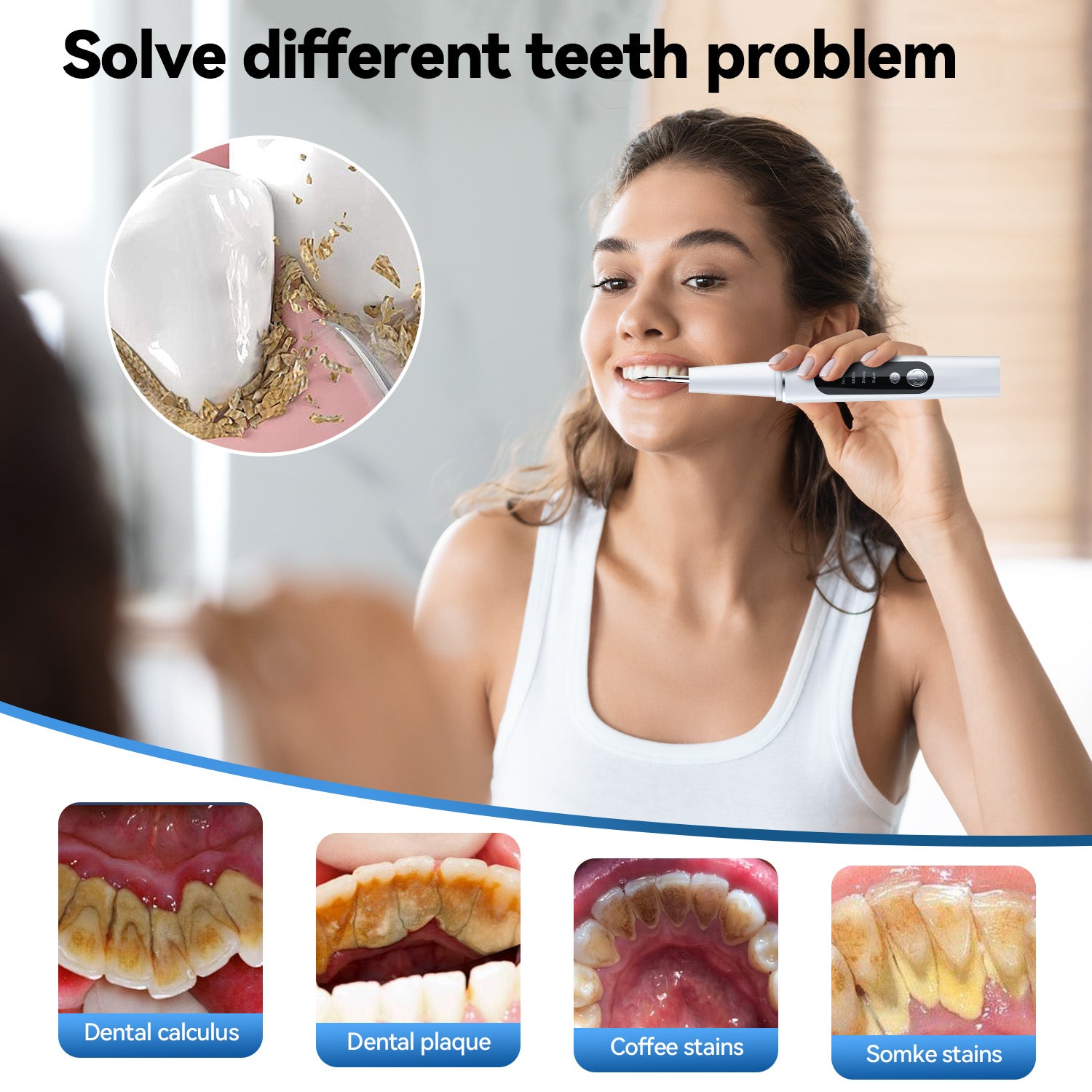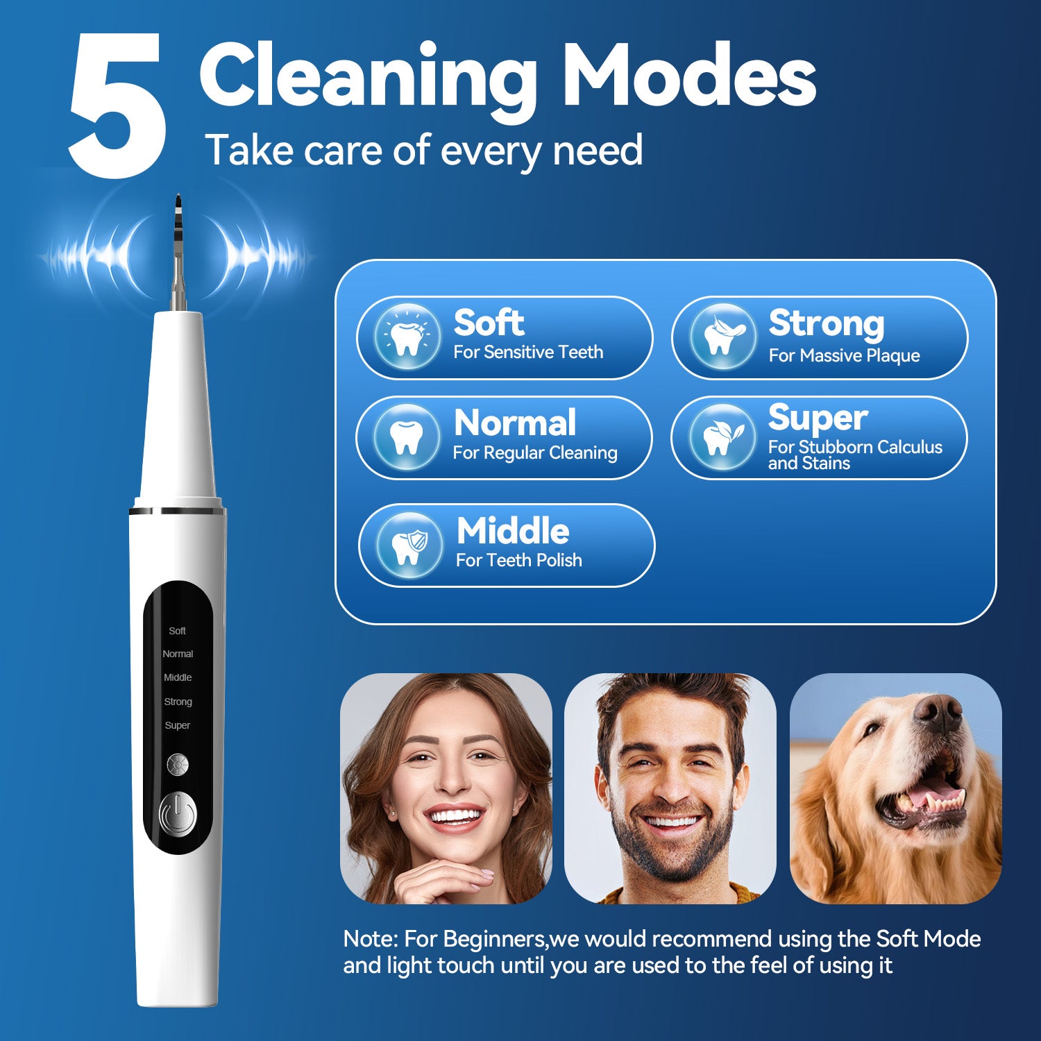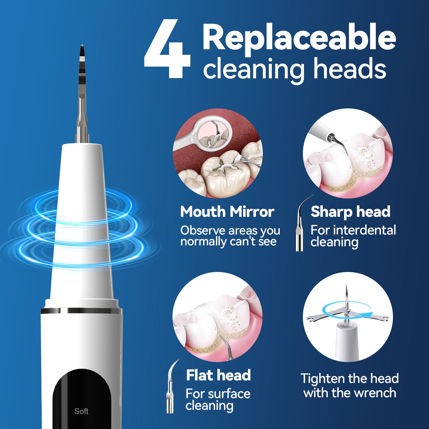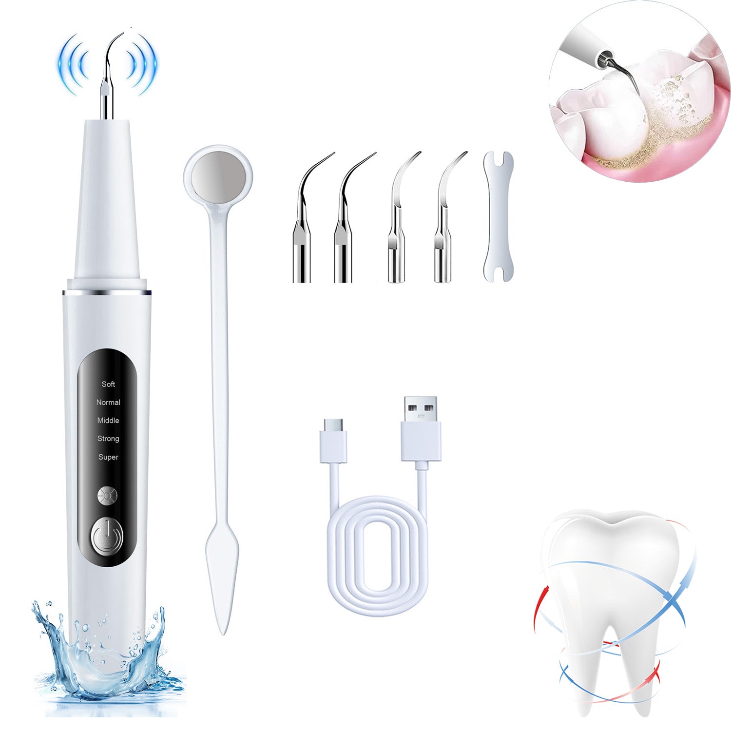 AlphaGeek Plaque Remover for Teeth, Electric Ultrasonic Tooth Cleaner Tartar Remover for Teeth with LED Light, with 4 Replaceable Heads and 5 Adjustable Modes