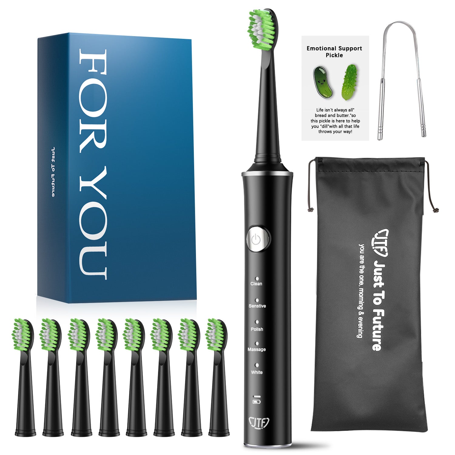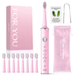 JTF Sonic Electric Toothbrush for Adults with Tongue Scraper, 5 Modes and 8 Brush Heads, Pink