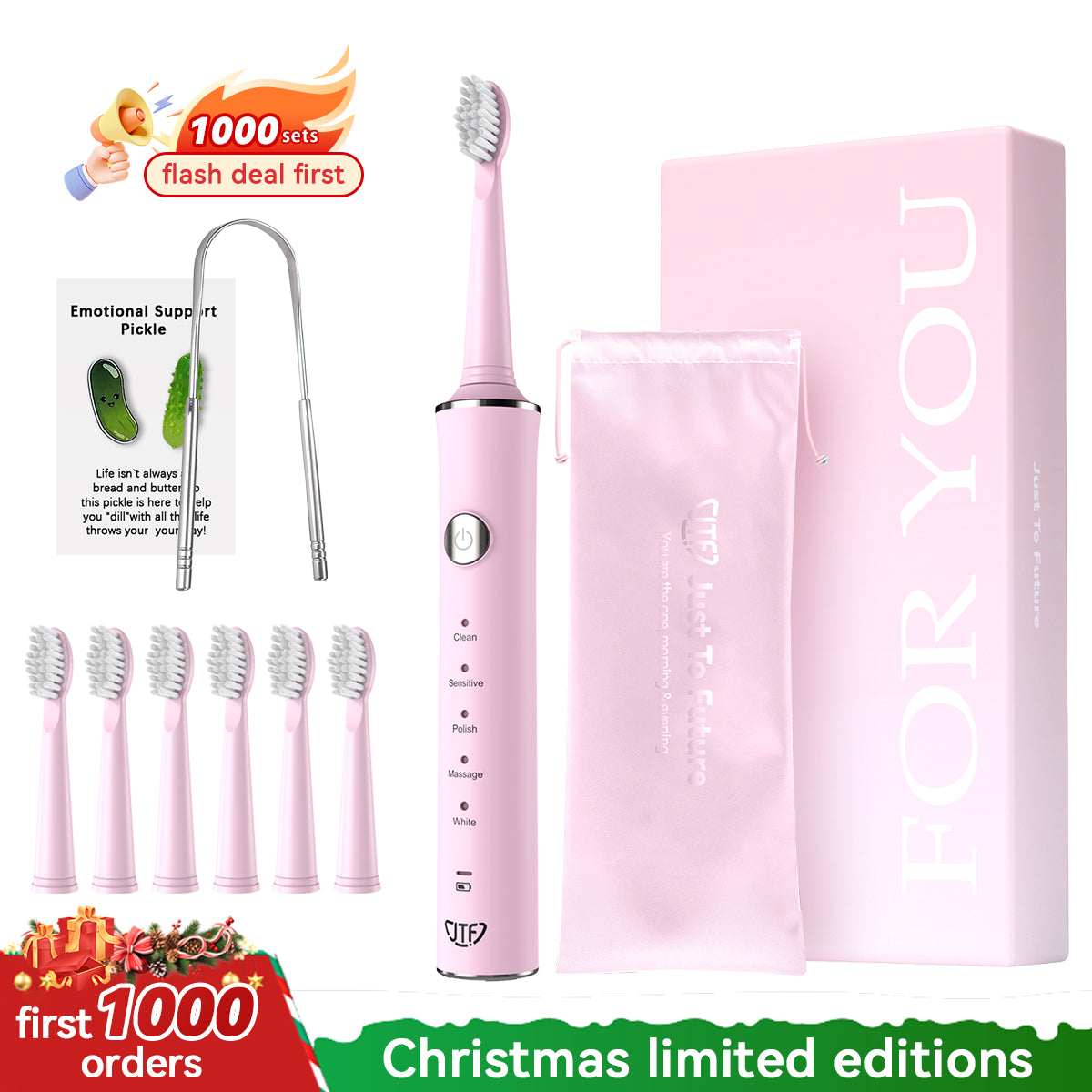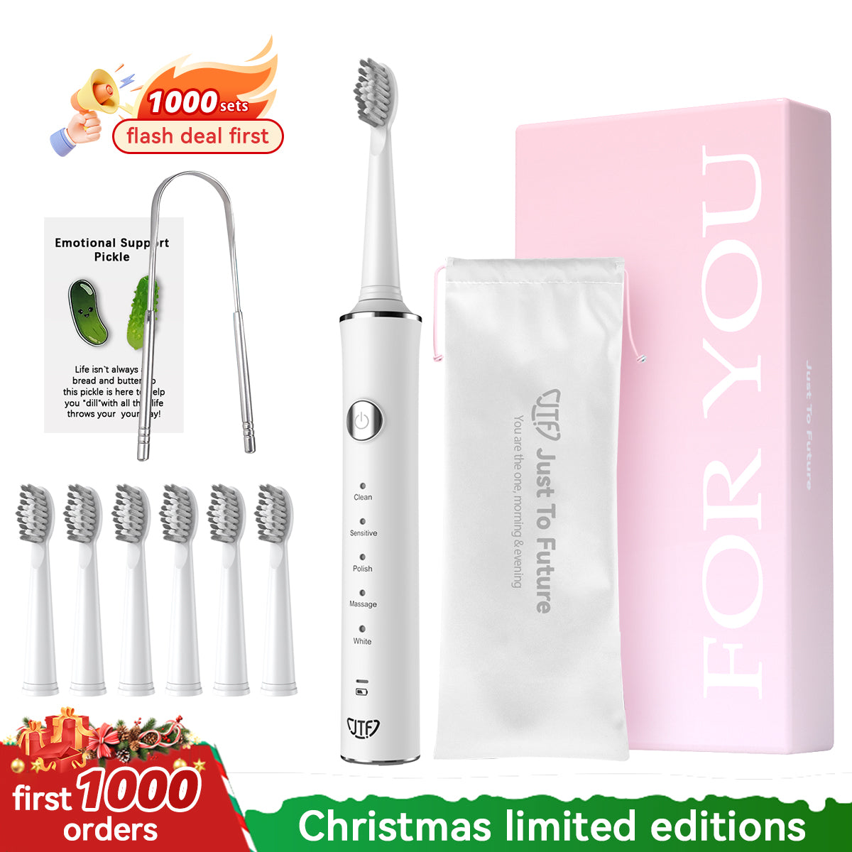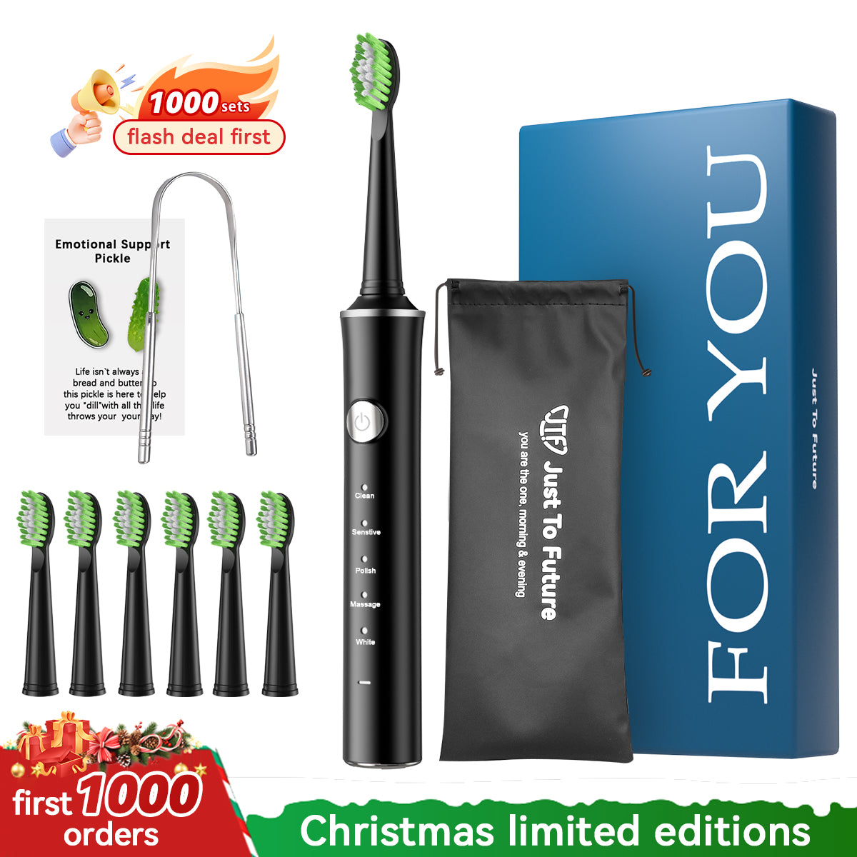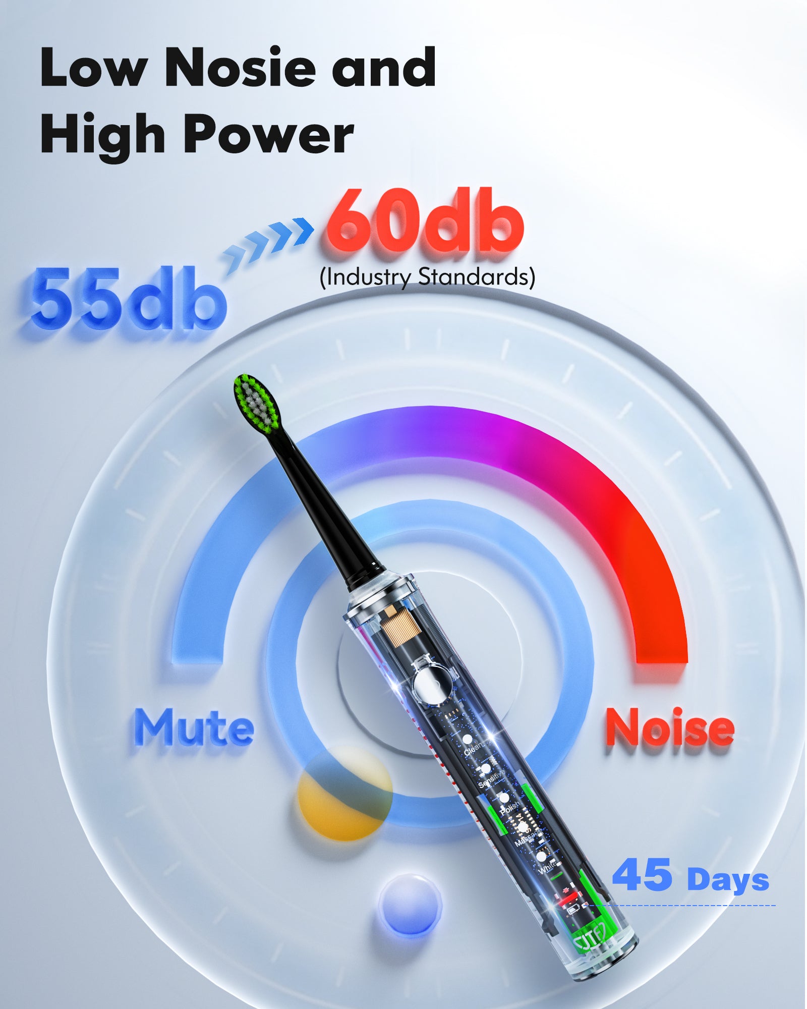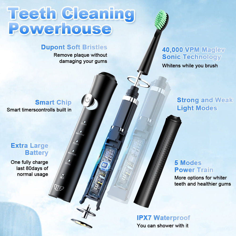 JTF J40 Sonic Electric Toothbrush for Adults - Rechargeable Electric Toothbrushes with 6 Brush Heads & Holder, 3 Hours Charge for 45 Days