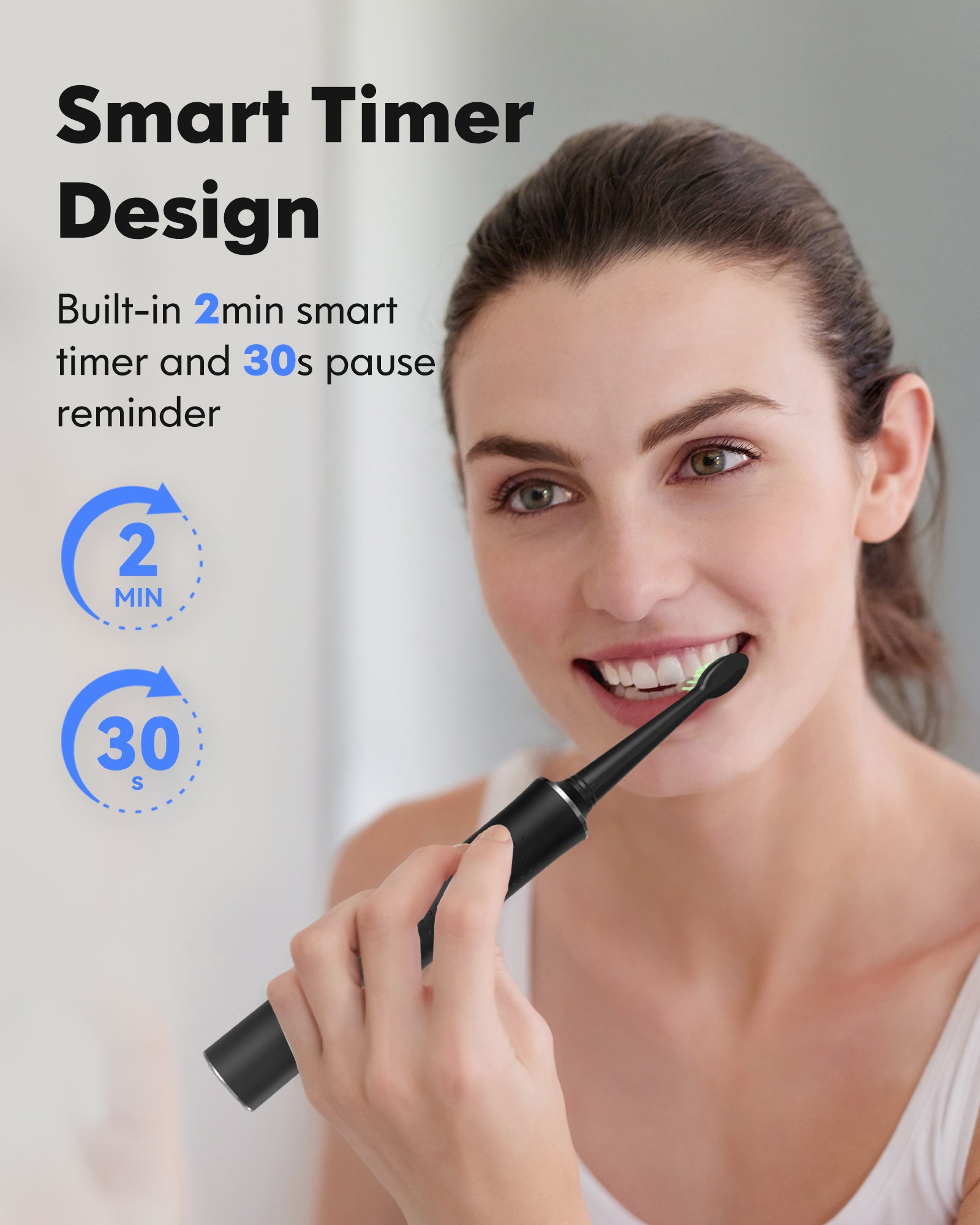 • Teeth Brightening Electric Toothbrush: Advanced brightening technology electric tethbrush for adults helps whiten teeth in just 14 days, leaving you with a more radiant smile. The built-in 2-minute timer and 30-second reminder function ensures a scientifically-recommended brushing time, and the 5 brushing modes offer a tailored cleaning experience that suits your unique oral care needs.