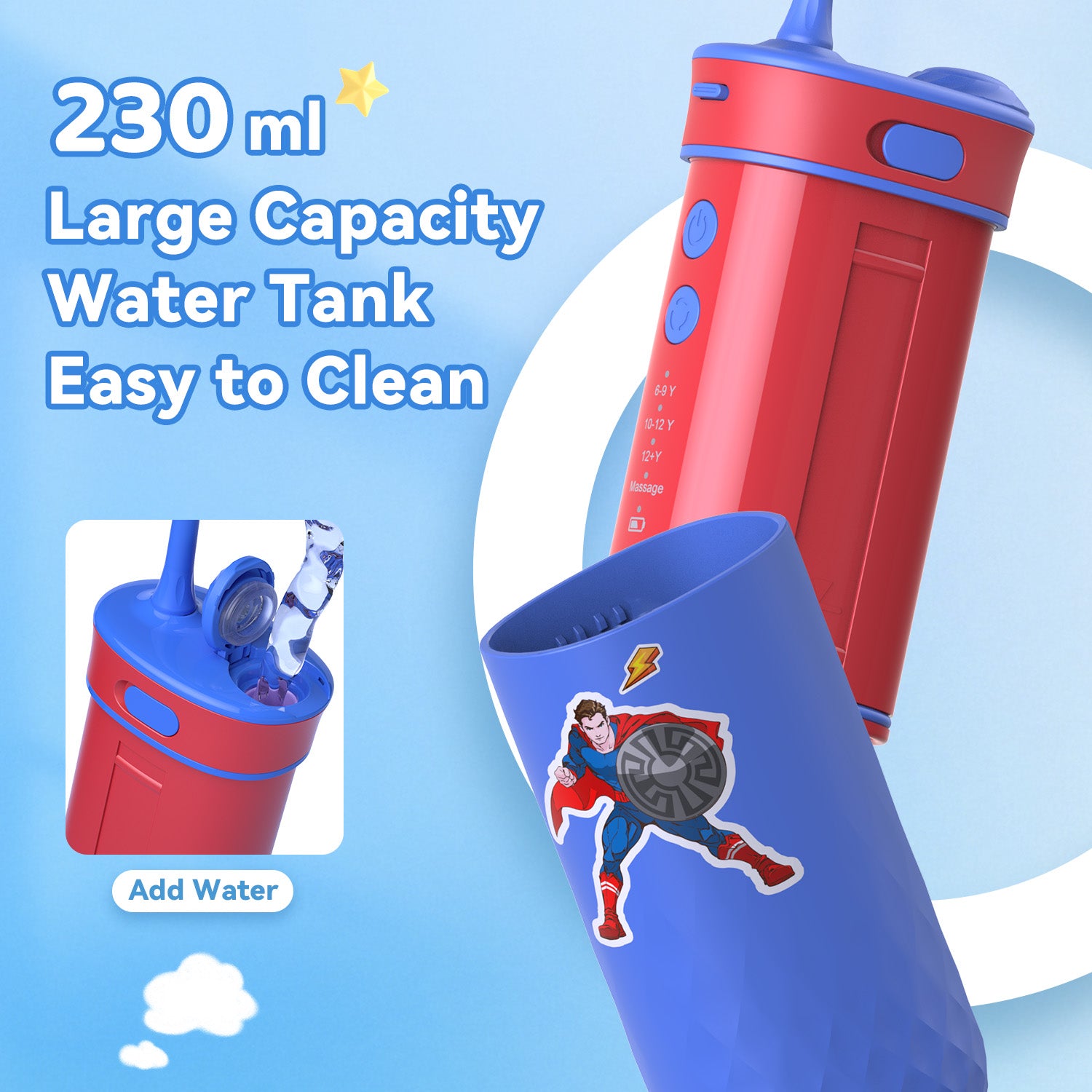 JTF Kids Water Dental Flosser: Rechargeable Portable Oral Irrigator with 4 Flossing Modes 230ml Tank 4 Tips Travel Bag Waterproof Stickers, Cordless Electric Flossers for Teeth Gum Braces Care, Age 6+
