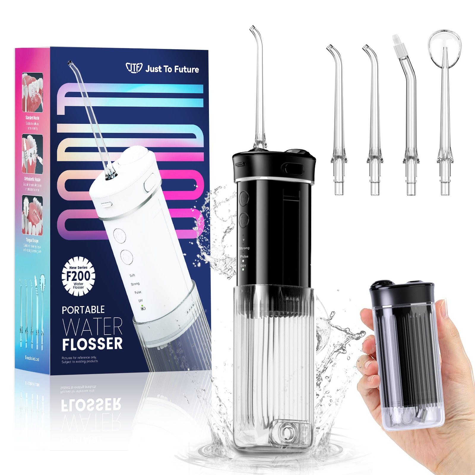 JTF Mini Cordless Water Flosser for Teeth with 5 Jet Tips and Travel Bag, 3+DIY Modes 230ML Telescopic Tank Portable Rechargeable Water Pick Dental Oral Irrigator, Black
