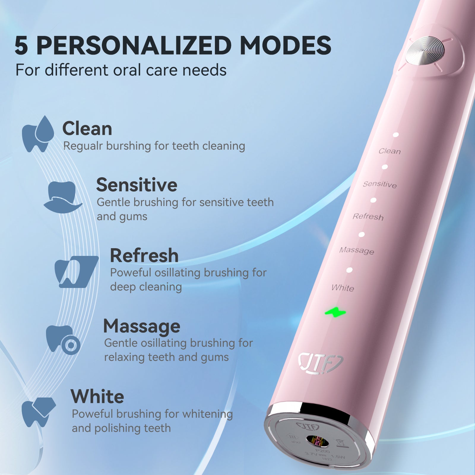- JTF sonic toothbrush adults has 5 Different Options: Clean, Sensitive, Refresh, White and Massage.