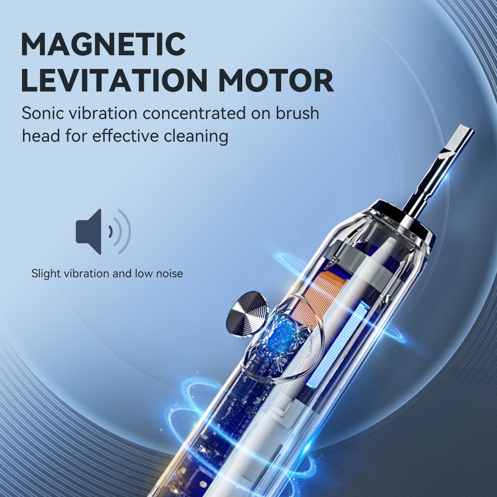 - Our P200 electric toothbrushes adults is designed with unique magnetic levitation,equip with 40,000 brush head movements per minute, (Swinging left and right for one movement), compare with manual toothbrush, this electric toothbrush are more effiective and reliable fight tartar and tooth stains. After using this for a period of time, we can see and feel a good difference with our teeth and gums.