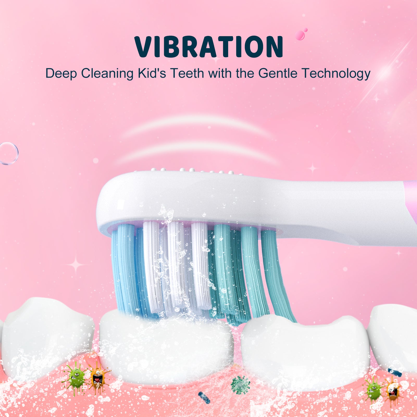 - EFFECTIVE CLEANING FOR KIDS - New motor technology provides a deep and gentle cleaning with lower noise. The 38,000 brush movement/min of kids toothbrush removes up to 100% more stains than a manual toothbrush effectively.