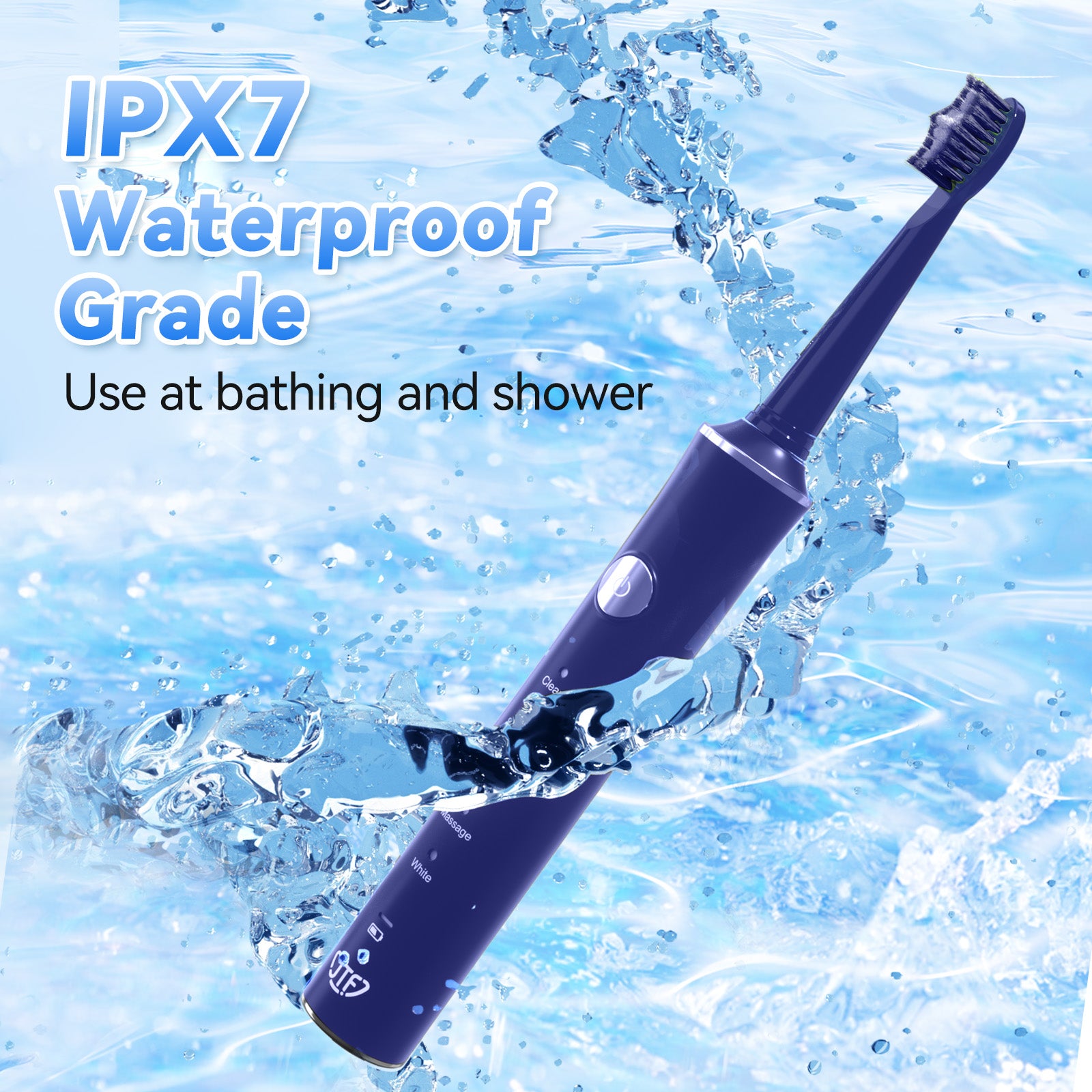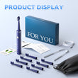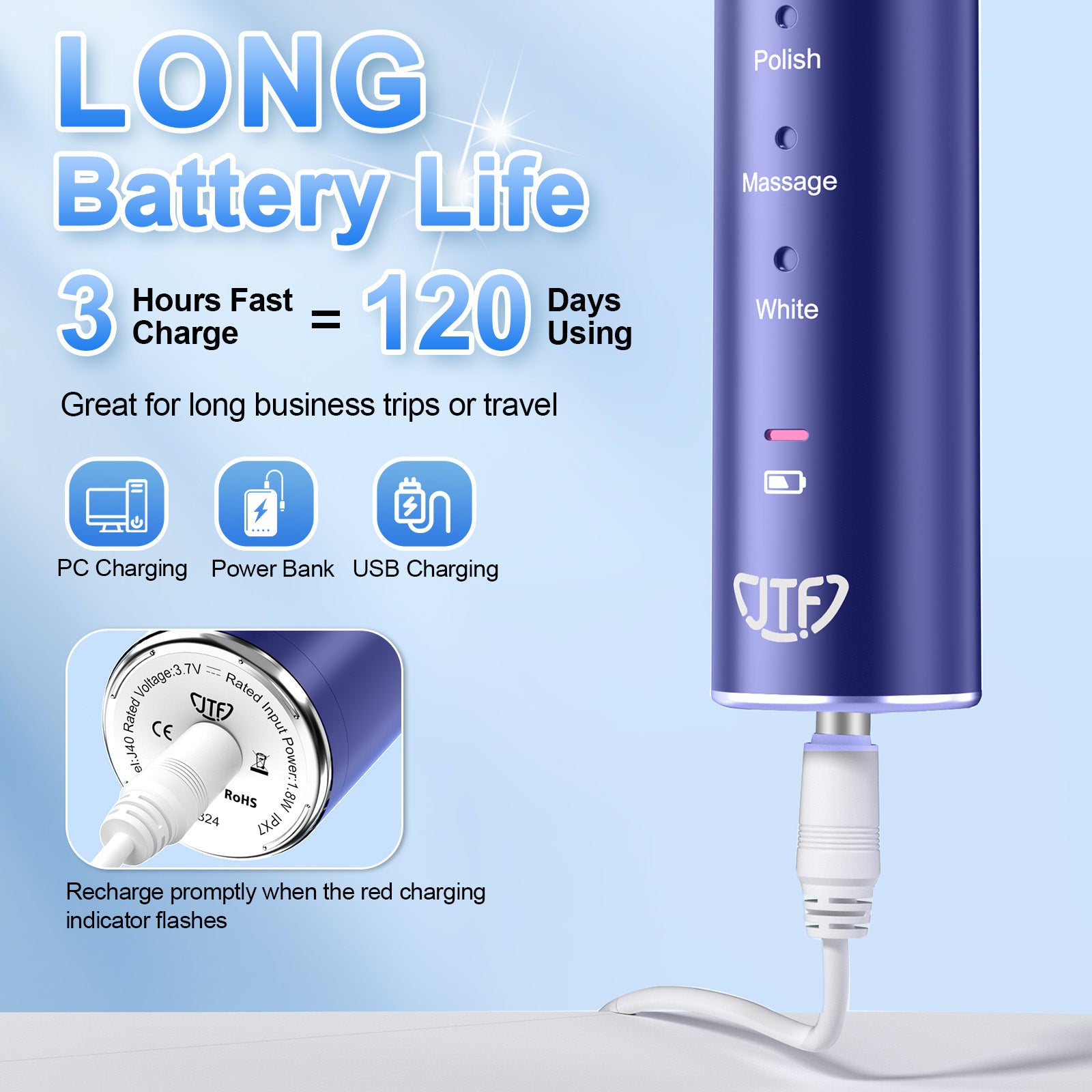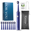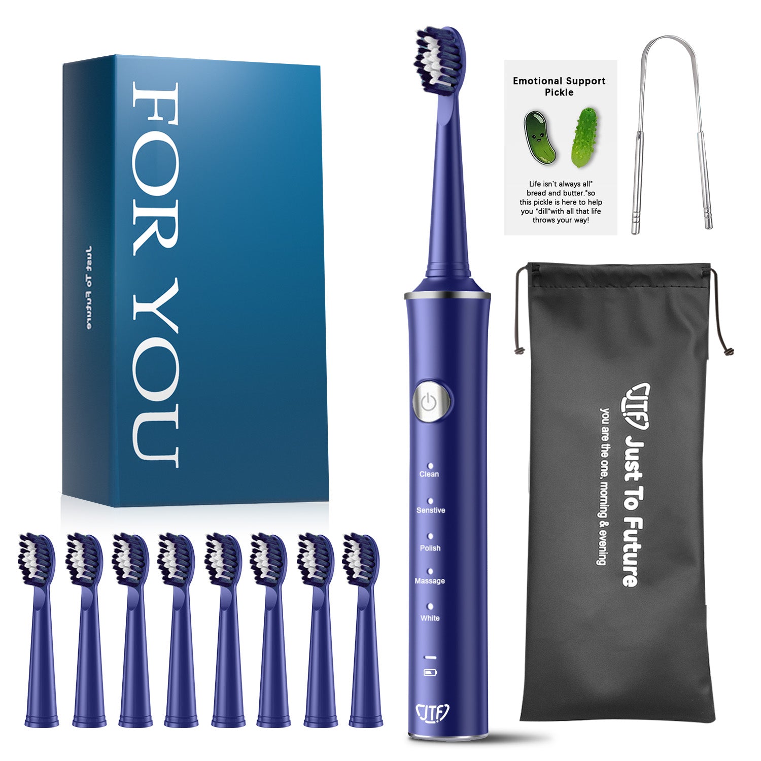 JTF Sonic Electric Toothbrush for Adults and Kids with 8 Brush Heads, Tongue Scraper and Travel Bag - FOR YOU 5 Modes Rechargeable Power Toothbrush for Family and Friends/For Home School Trips, Blue