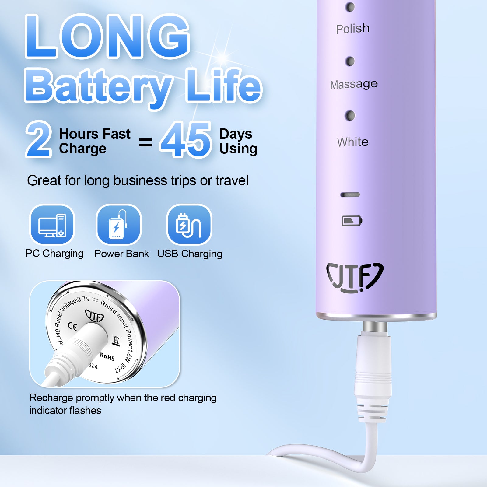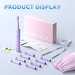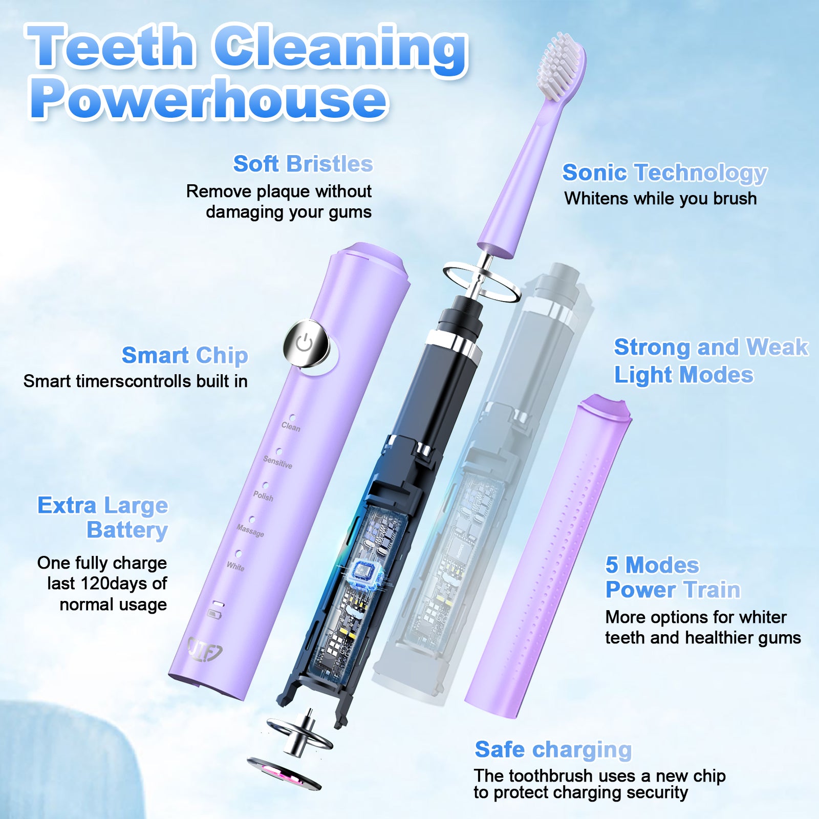 JTF Sonic Electric Toothbrush for Adults and Kids with 8 Brush Heads, Tongue Scraper and Travel Bag - FOR YOU 5 Modes Rechargeable Power Toothbrush for Family and Friends/For Home School Trips,Purple