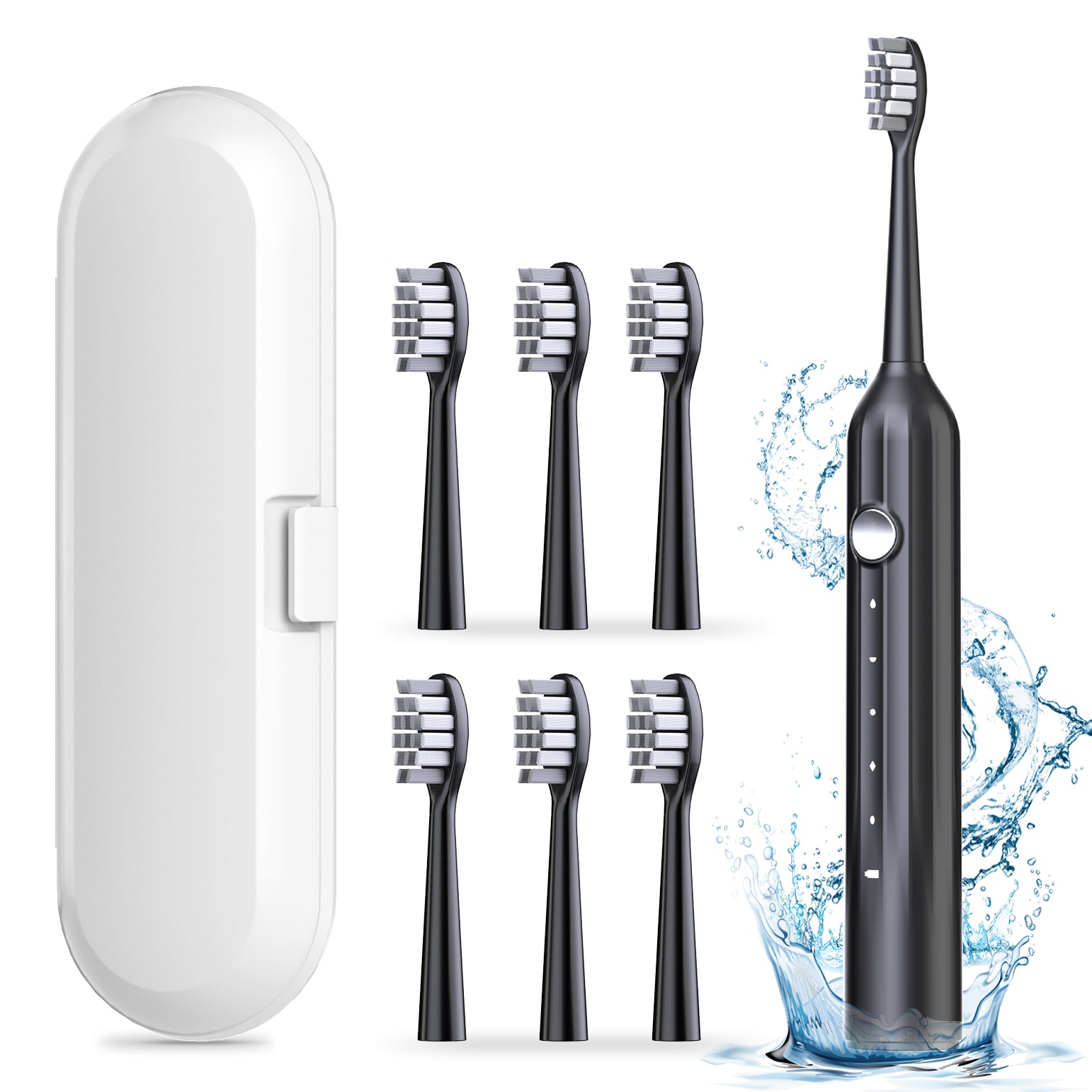 JTF Sonic Electric Toothbrush for Adults with Travel Case, 5 Modes and 6 Brush Heads, One 4 Hours Fast Charge for 90 Days Use, Black